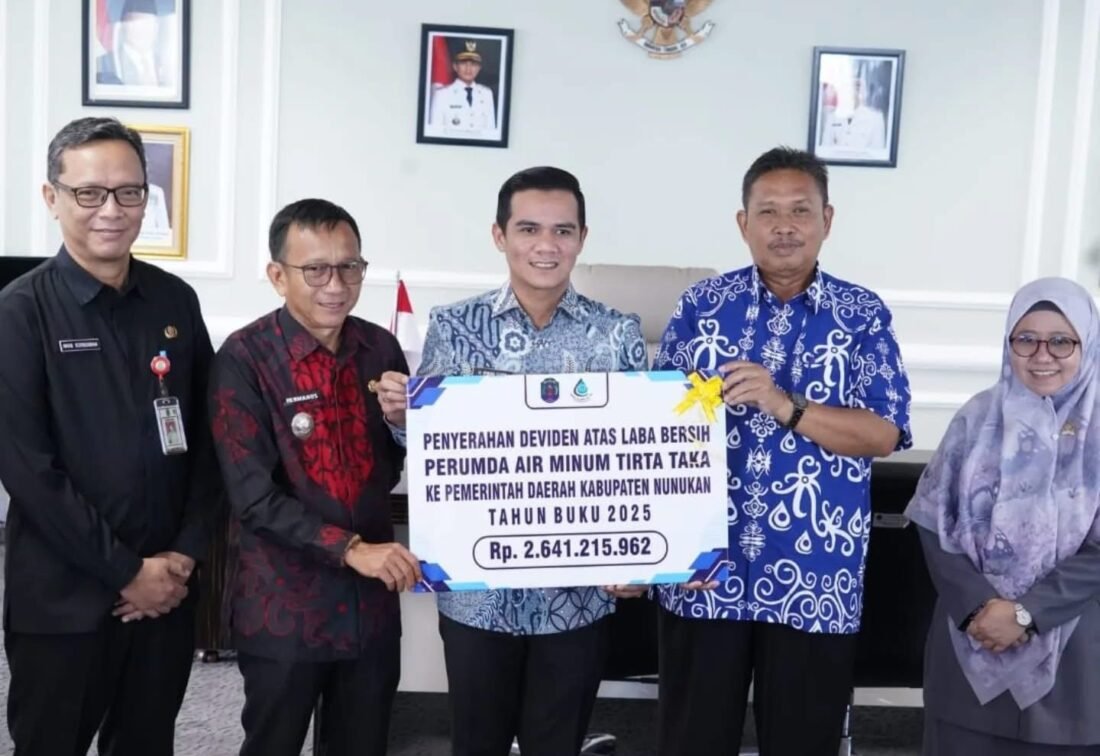 benuanta.co.id, NUNUKAN – Perusahaan Umum Daerah (Perumda) Air Minum Tirta Taka Kabupaten Nunukan menyerahkan dividen (bagi hasil) tahun buku 2025 sebesar Rp2,6 miliar sebagai Pendapatan Asli Daerah (PAD).