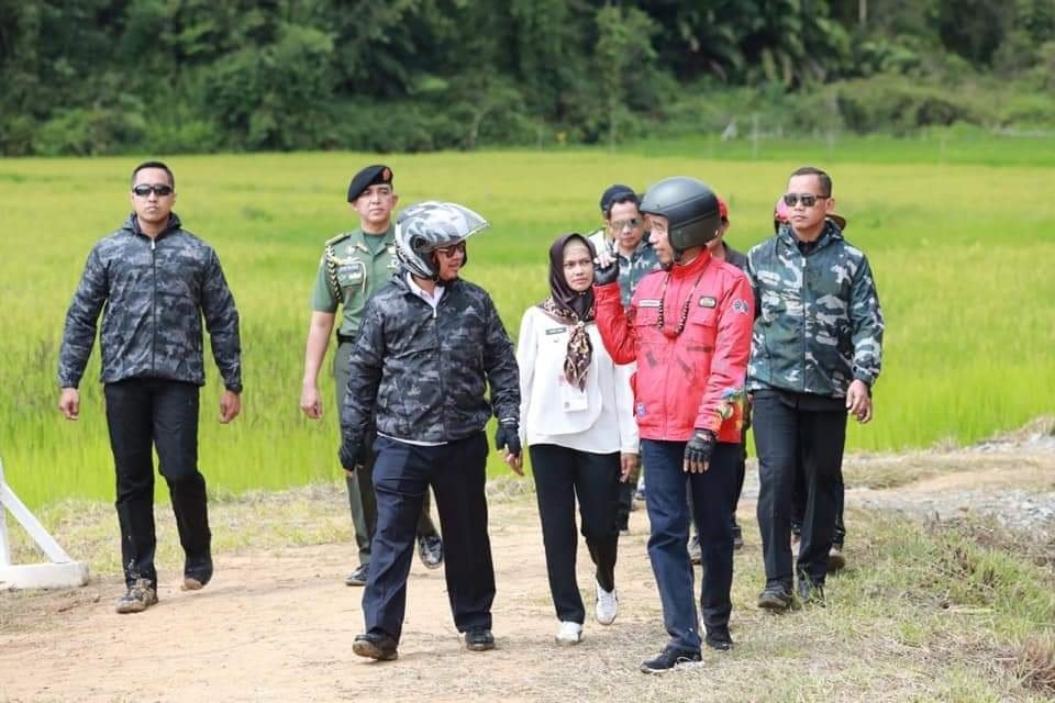 Jokowi meninjau pembangunan jalan perbatasan dan mengecek lokasi pembangunan PLBN di Long Midang. Masyarakat Krayan yang notabene dalam Pilpres 2019 lalu sebagian besar memilih pasangan Jokowi-Ma’ruf sudah menunggu dengan suka cita.