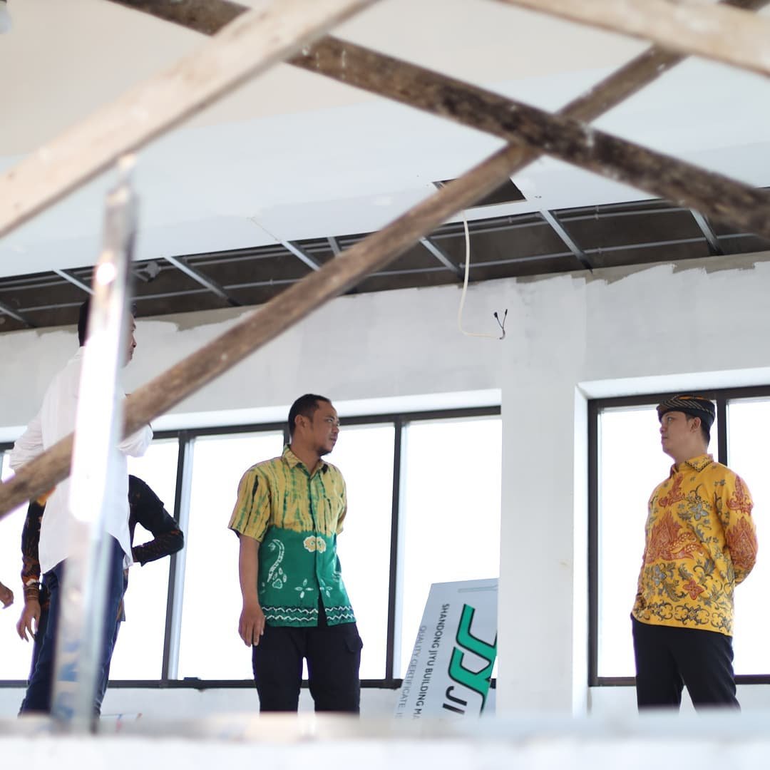 Dalam kesempatan tersebut Bupati bersama Sekda, Ketua DPRD berserta anggota DPRD lainnya melakukan monitoring gedung serbaguna yang nanti digunakan sebagai Gedung DPRD untuk sementara waktu.