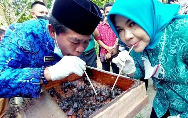 “Mari bersama-sama kita kembangkan madu kelulut ini, dengan cara ikut bantu memasarkannya baik di tingkat kabupaten, provinsi ataupun nasional.
