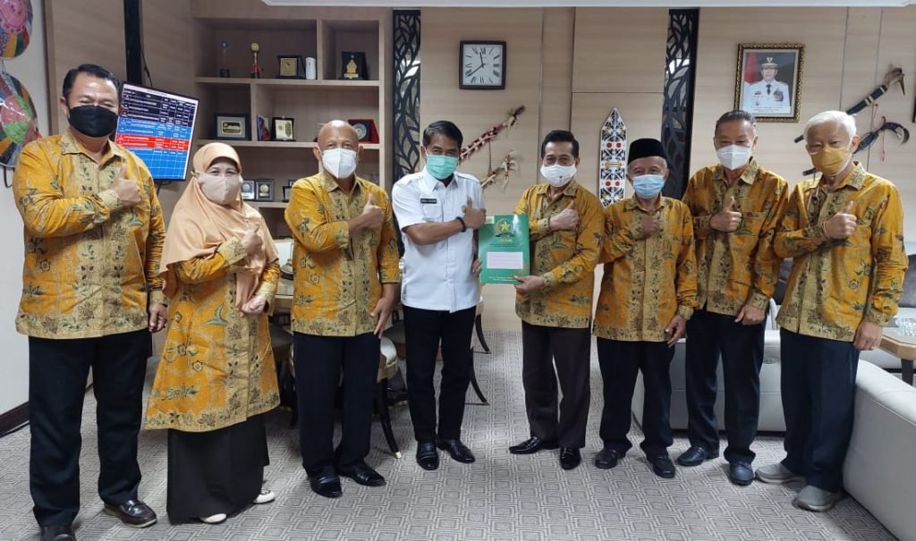 TANJUNG SELOR – Ketua Forum Komunikasi Kerukunan Umat Beragama (FKUB) Provinsi Kalimantan Utara (Kaltara), Ustaz Abdul Djalil Fatah beserta sejumlah pengurus menghadiri undangan audiensi Gubernur Kaltara, Drs. H. Zainal Arifin Paliwang SH M.Hum, Rabu (6/7/2021). Pertemuan ini membahas beberapa hal. Salah satunya mengenai protokol kesehatan (prokes) Covid-19.