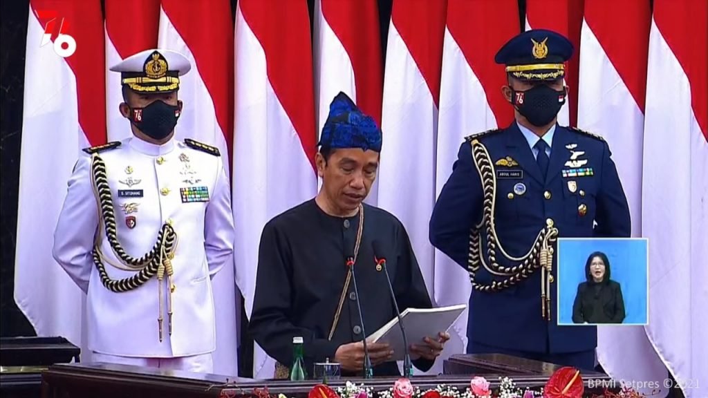 Dalam pidato pertamanya, Presiden Jokowi mengatakan selama satu setengah tahun menghadapi pandemi, terjadi penguatan perilaku masyarakat dalam menghadapi pandemi, infrastruktur kesehatan serta kelembagaan nasional.