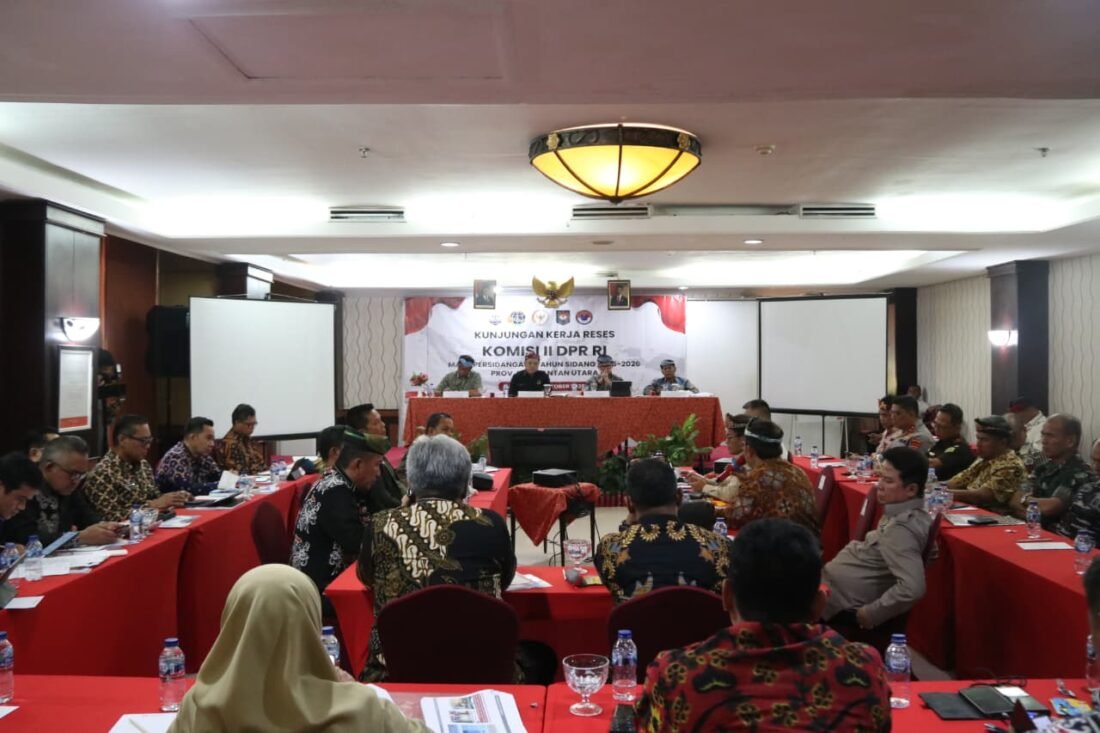 Tarakan – Kepala Kepolisian Daerah Kalimantan Utara Irjen Pol. Djati Wiyoto Abadhy S.I.K menghadiri rapat Forkopimda Kaltara dengan Komisi II DPR RI bertempat di Ballroom Swiss Belhotel Jl. Mulawarman Kota Tarakan. Kegiatan ini merupakan rangkaian reses Komisi II DPR RI Masa Persidangan I Tahun Sidang 2025-2026 di Provinsi Kaltara. Pertemuan ini berfokus pada pembahasan strategis mengenai Penguatan Ketahanan Wilayah Perbatasan Kalimantan Utara sebagai Serambi Depan Negara Republik Indonesia, Sabtu (04/10/2025).