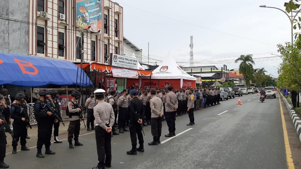 TANJUNG SELOR – Polda Kaltara dan instansi terkait hari ini, Ahad 6 September 2020 melaksanakan pengamanan pendaftaran 3 pasangan calon gubernur dan wakil gubernur Provinsi Kaltara periode 2021-2024. Pengamaan dilakukan secara ketat agar selalu tercipta Kambtibmas, selain itu juga penerapan protokol kesehatan covid-19.