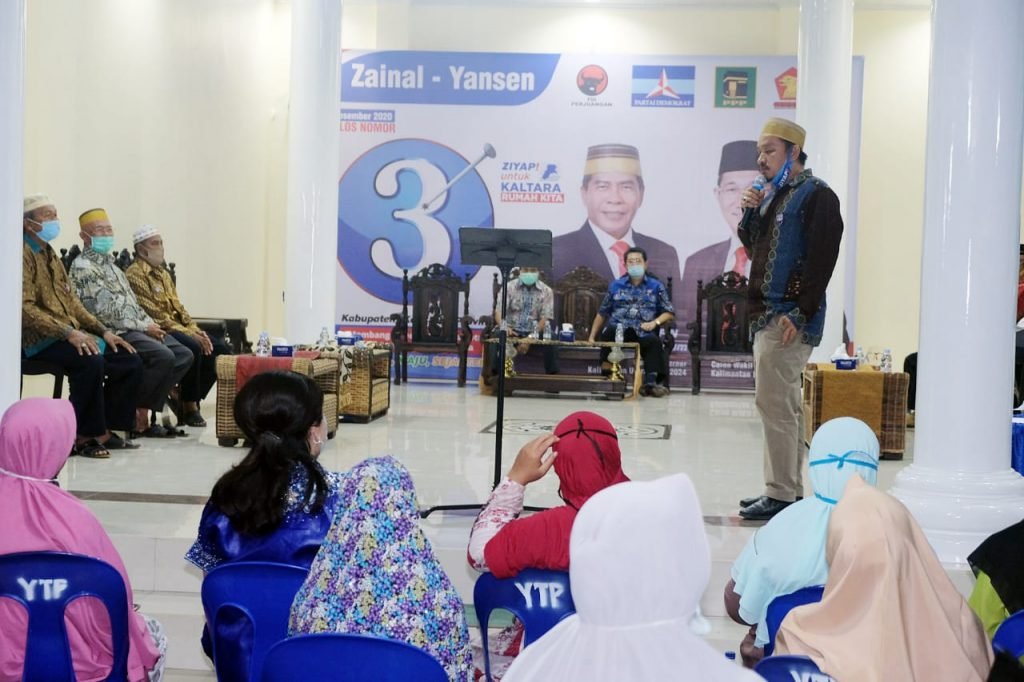 “Saya menyampaikan kepada seluruh hadirin kalau kita berasal dari kampung yang sama dengan Bapak Zainal, sedangkan kita tinggal serumah dengan Bapak Yansen, jadi tidak ada alasan untuk ke lain hati,” kata H. Aleng menjelaskan arti bahasa daerah yang ia sampaikan.