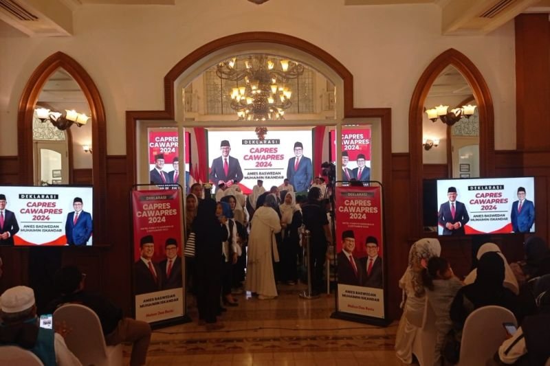 Surabaya – Deklarasi bakal Calon Presiden dan bakal Calon Wakil Presiden RI, Anies Baswedan dan Muhaimin Iskandar digelar salah satu hotel bersejarah yakni Hotel Majapahit, Jalan Tunjungan Kota Surabaya, Jawa Timur, Sabtu.