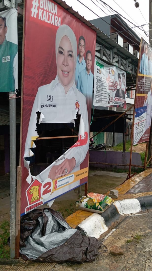 benuanta.co.id, TARAKAN – Sejumlah baliho salah satu calon DPR RI Dapil Kalimantan Utara (Kaltara) yakni Hj Rahmawati Zainal rusak di beberapa titik di Kota Tarakan. Anehnya, kerusakan baliho tersebut terjadi berulang kali setiap dilakukan pergantian.