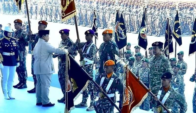 “Dengan mengucap Bismillahirrahmannirrahim, pada pagi hari ini, hari Minggu, tanggal 10 Agustus tahun 2025, saya Prabowo Subianto, Presiden Republik Indonesia, dengan ini meresmikan enam Komando Daerah Militer, 14 Komando Daerah Angkatan Laut, tiga Komando Daerah Angkatan Udara, satu Komando Operasi Udara, enam grup Komando Pasukan Khusus, 20 Brigade Teritorial Pembangunan, satu Brigade Infanteri Marinir, satu Resimen Korps Pasukan Gerak Cepat, 100 Batalyon Teritorial Pembangunan, lima Batalyon Infanteri Marinir, lima Batalyon Komando Korps Pasukan Gerak Cepat,” kata Presiden Prabowo, yang kemudian Presiden menekan tombol sirine, dan dilanjutkan dengan penembakan meriam.