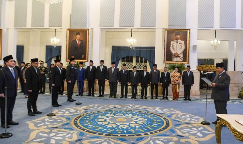 Dalam prosesi yang berlangsung tepat pada pukul 15.00 WIB itu, Presiden Prabowo memimpin pengambilan sumpah pejabat-pejabat baru tersebut.