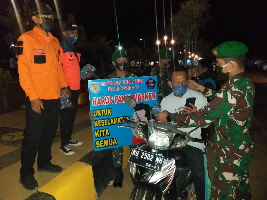 “Patroli penegakan disiplin protokol kesehatan di berbagai tempat, ini dimaksudkan untuk menumbuhkan kesadaran masyarakat akan pentingnya mematuhi protokol kesehatan di tengah pandemi Covid–19,” kata Dandim 0914/TNT Letkol Czi. Tri Prio Utomo.