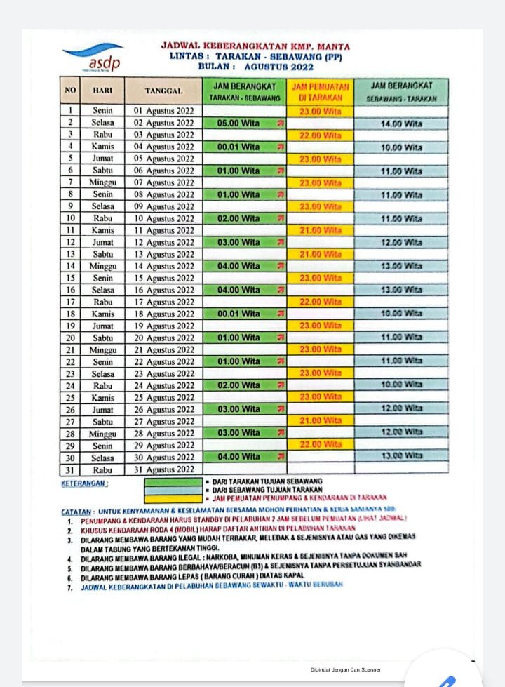 Berikut list harga tiket Kapal Ferry tujuan KTT- Tarakan: