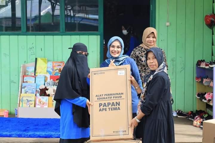 benuanta.co.id, TANA TIDUNG – Bunda PAUD Tana Tidung, Vamelia Ibrahim menyerahkan Alat Permainan Edukatif (APE) kepada perserta didik diawali di TK Alkhairaat yang berada di Desa Tideng Pale, Jumat (15/10/2022).