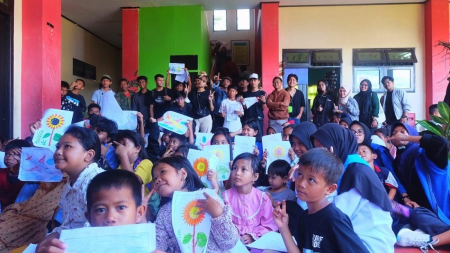 “Sejumlah anak-anak kami kumpulkan sambil mewarnai agar mereka lebih santai dan bersemangat lagi,” ucapnya.