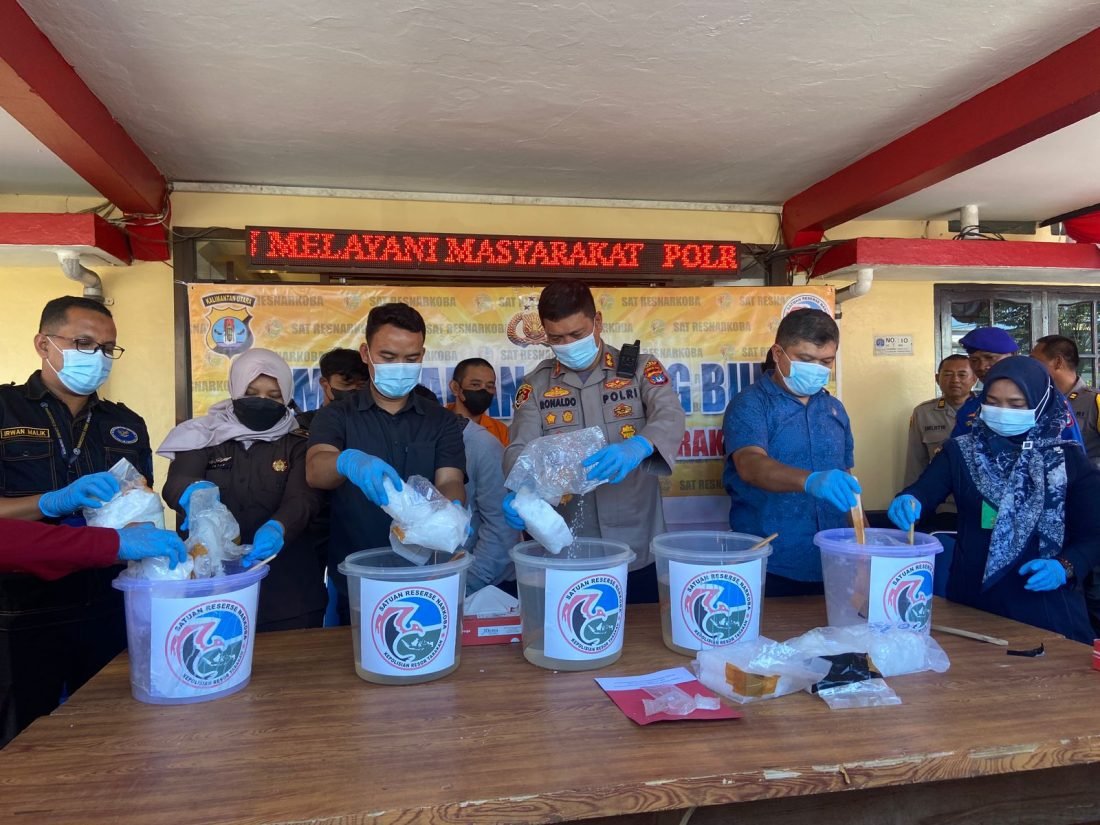 benuanta.co.id, TARAKAN – Barang bukti narkotika dengan berat 9.988,22 gram dimusnahkan oleh Polres Tarakan. Sebelumnya, kasus peredaran narkotika ini menyeret dua tersangka SL (43) dan BR (40) yang dibekuk oleh Tim Opsnal Satreskoba Polres Tarakan.
