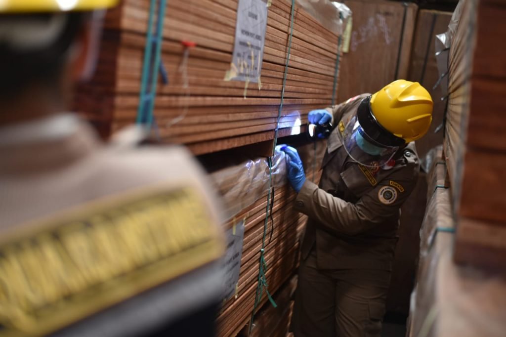 TARAKAN – Kementerian Pertanian melalui Karantina Pertanian Kelas II Kota Tarakan kembali melakukan pemeriksaan fisik terhadap kayu olahan. Sekaligus memfasilitasi ekspor kayu olahan sebanyak kurang lebih 2.256 M3 berupa plywood dan moulding asal Kalimantan Utara, yang produksi oleh PT. Intracawood Manufacturing dengan rincian volume 2.236 M3 siap dikirim ke dua negara. Yakni Amerika Serikat dengan rincian 2.236 M3, dan 20 M3 ke Malaysia dengan total nilai ekonomis Rp 15 Miliar, Selasa (25/8/2020).