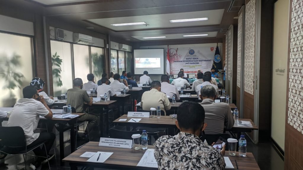TARAKAN – Rapat Kerja Program Pemberdayaan Masyarakat Anti Narkoba bagi instansi Pemerintah, Badan Usaha Milik Negara (BUMN) dan Swasta bersama Badan Narkotika Nasional Kota (BNNK) Tarakan, di Hotel Tarakan Plaza, Rabu (26/8/2020) pagi tadi.
