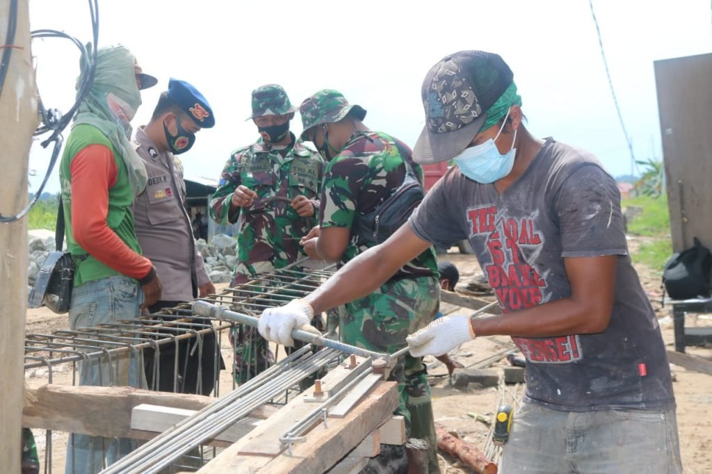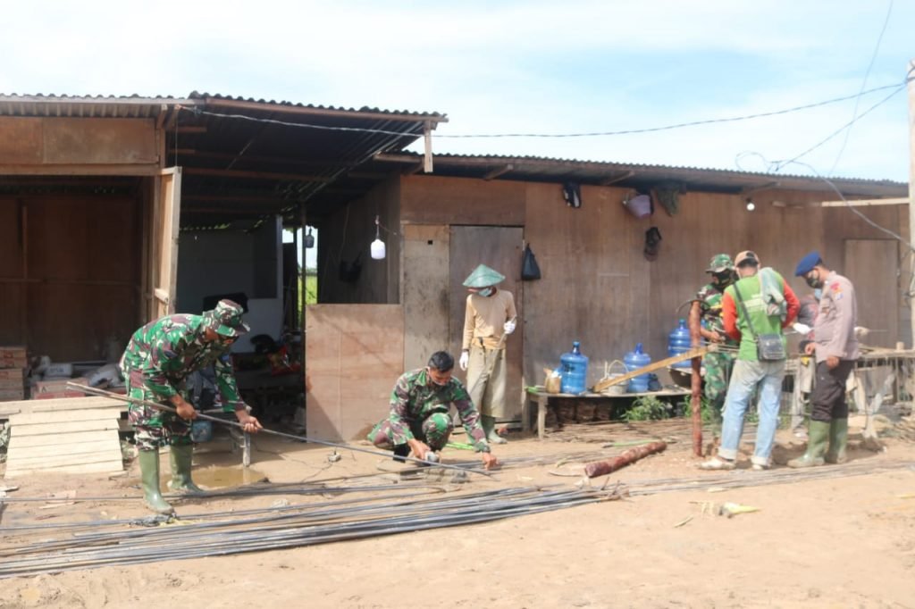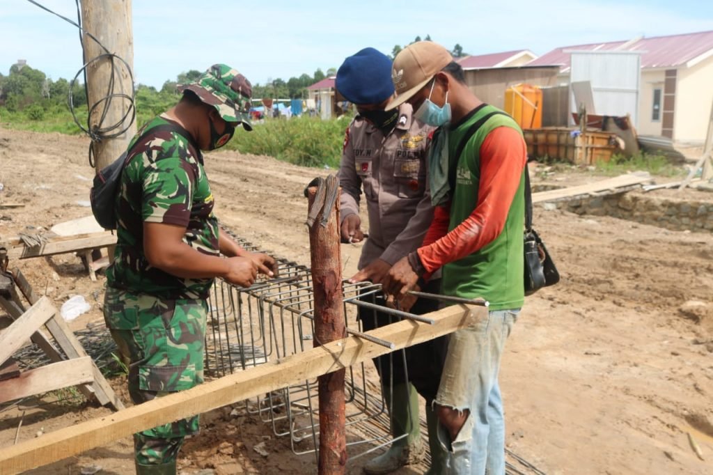 TARAKAN – Prajurit Satgas TMMD ke-109 Kodim 0907/Tarakan bersama warga mulai merangkai kawat besi guna kerangka jembatan di RT. 12, Kelurahan Karang Harapan, Kecamatan Tarakan Barat, Jumat (25/09/2020).