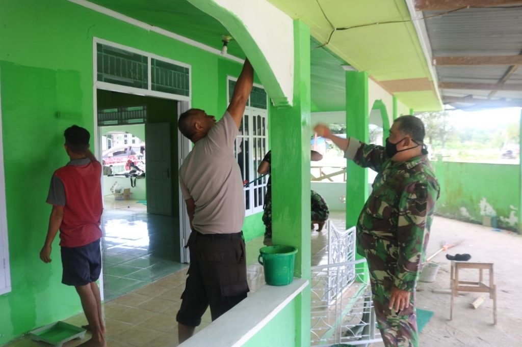 TARAKAN – Proses pengerjaan sasaran fisik tambahan di Masjid An – Nur dalam Progam TMMD Ke – 109 Kodim 0907/Trk sudah mencapai 75 %, Senin (05/10/2020).