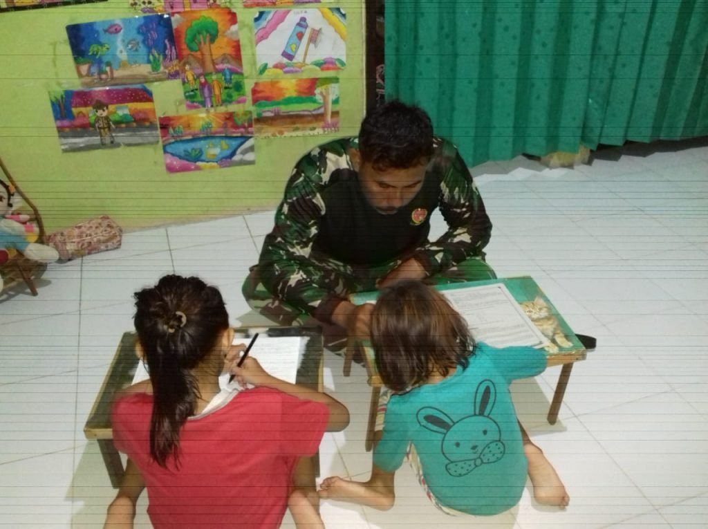 Salah satunya seperti yang dilakukan oleh Sertu Taufik dari Kodim 0907/Tarakan, dengan mengisi waktu senggang di malam hari yang setiap harinya mengajari anak Pak Shaleh di rumah untuk belajar, Jumat (16/10/2020).