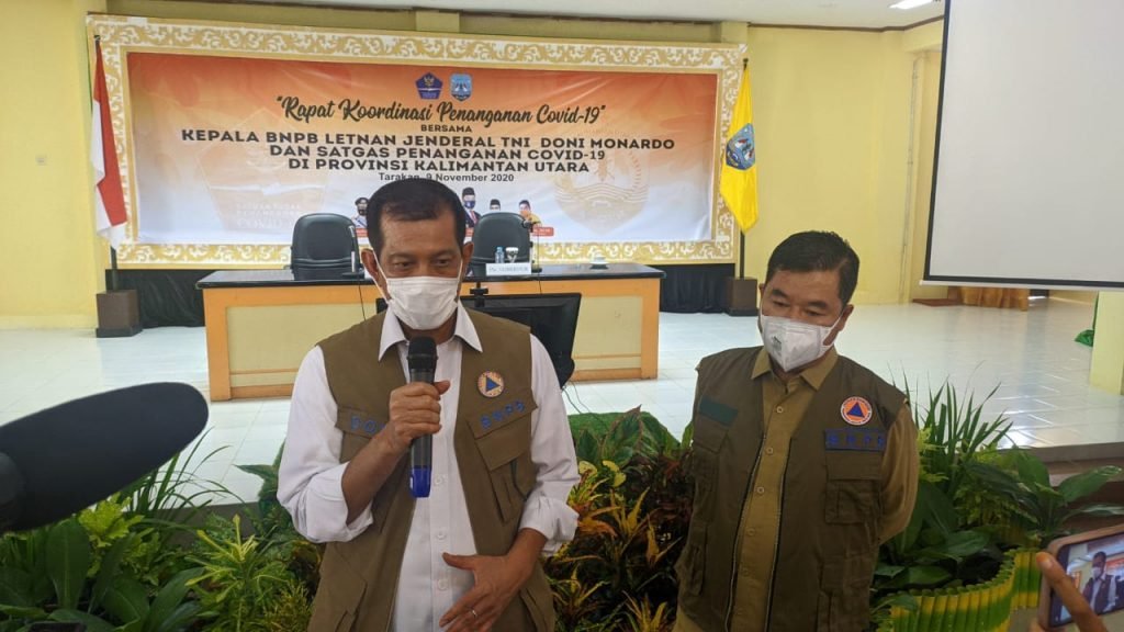TARAKAN – Melakukan kunjungan kerja sekaligus Rapat Koordinasi (Rakor) penanganan Covid-19 di 6 provinsi termasuk di Provinsi Kalimantan Utara hari ini. Ketua Satuan Tugas (Satgas) Penanganan Covid-19 yang juga Kepala Badan Nasional Penanggulangan Bencana (BNPB), Doni Monardo meminta masyarakat untuk tidak menganggap enteng masalah Covid-19.
