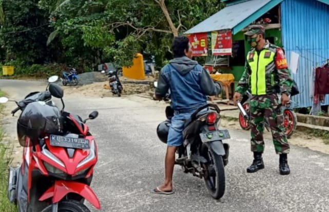 TARAKAN – Penegakan Disiplin Protokol Kesehatan terus dilakukan Babinsa Jajaran Kodim 0907/Trk sebagai upaya pencegahan penyebaran Covid 19 diwilayah.