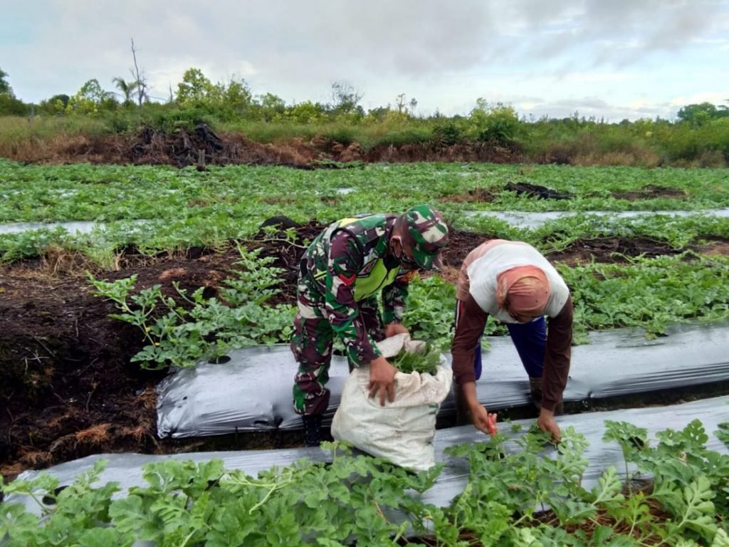 Seperti yang dilakukan Koptu Simanjuntak, Babinsa Koramil 0907/04 Tarut dalam pendampingan terhadap petani semangka di wilayah binaannya, Selasa