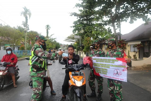 Satgas Covid-19 gabungan TNI-Polri, Satpol PP dan instansi lainnya yang dimotori Kodim 0907/Trk terus memberikan edukasi pentingnya penggunaan masker saat keluar rumah dan berada ditempat umum sebagai upaya meningkatkan kesadaran masyarakat untuk dapat mencegah penyebaran Covid-19.