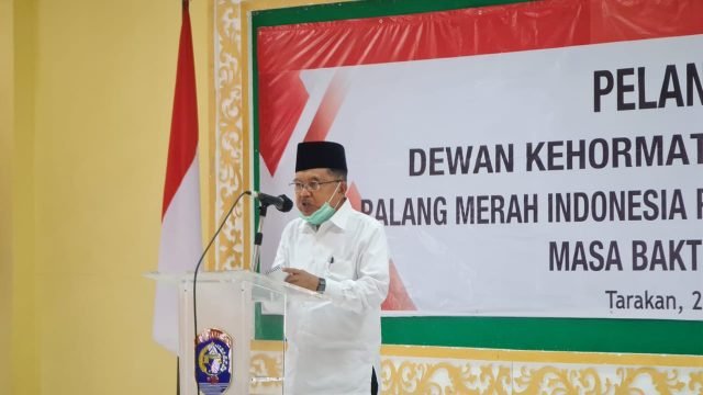 TARAKAN – Pengurus Palang Merah Indonesia (PMI) Provinsi Kalimantan Utara secara resmi dilantik oleh Ketua Umum PMI, Dr. Drs. H. Muhammad Jusuf Kalla pada Rabu, 28 April 2021 bertempat di Ruang Serbaguna Pemerintah Kota Tarakan.