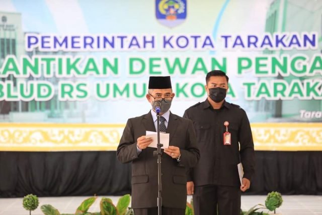 TARAKAN – Walikota Tarakan, dr. H. Khairul, M.Kes., secara resmi melantik dan mengambil sumpah Dewan Pengawas Badan Layanan Umum Daerah Rumah Sakit Umum Kota Tarakan, di Gedung Serbaguna Kantor Walikota Tarakan, Senin 3 Mei 2021.
