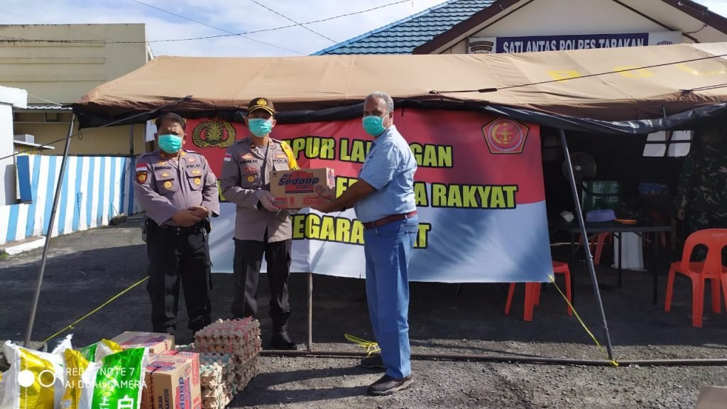 Wakil Kapolres Tarakan Kompol Andreas Nurcahyo, S.Ik menerima bantuan dari PT Medco E&P Tarakan di Dapur Umum yang berdiri di halaman kantor Unit Kecelakaan Satlantas Polres Tarakan di Jalan Jenderal Sudirman.