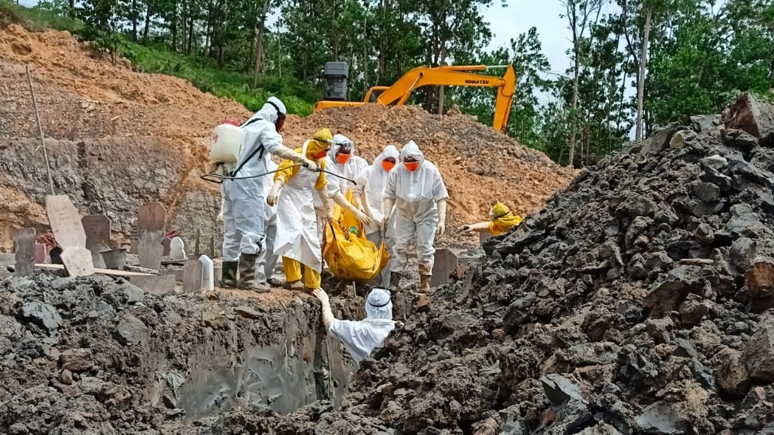 “1 jenazah disiapkan triplek, 1 terpal dan kantong jenazah. Proses kerjanya dibagi 3 tim yaitu pagi dan siang. Juga dilakukan pemasangan Police Line oleh pihak berwenang dan didampingi oleh 2 orang pihak keluarga per jenazah,” tambahnya. (*)