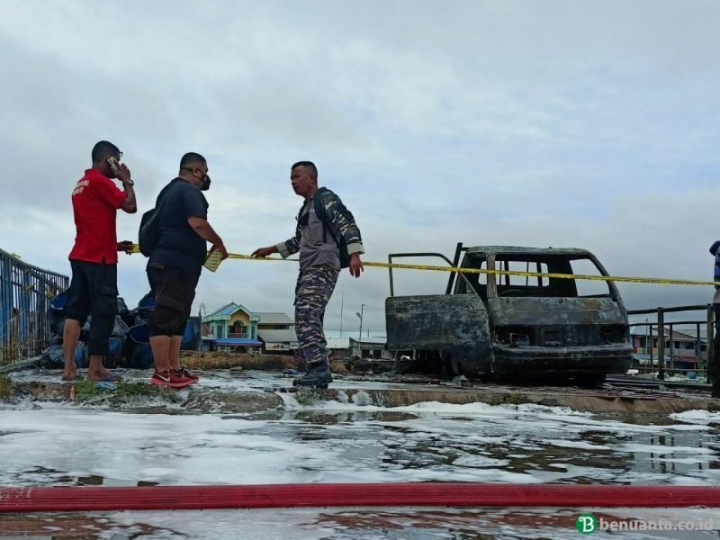 benuanta.co.id, TARAKAN – Kebakaran pikap di area Pelabuhan SDF Kota Tarakan kini telah berhasil dipadamkan. Pantauan benuanta.co.id, Tempat Perkara Kejadian (TKP) telah dipasang garis polisi (Police Line). Polisi sedang melakukan penyelidikan kasus ini.