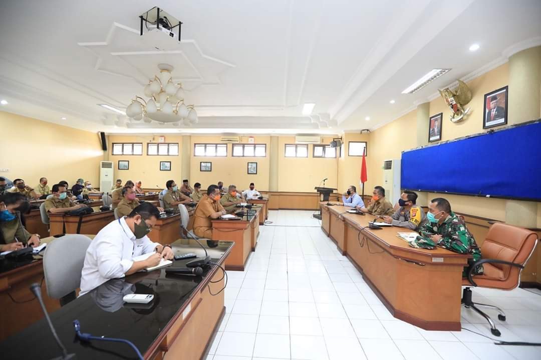 TARAKAN – Walikota Tarakan, dr. Khairul, M.Kes memimpin rapat evaluasi Penerapan Pembatasan Sosial Berskala Besar (PSBB) Kota Tarakan pekan pertama di ruang rapat Imbaya Pemkot Tarakan. Rapat evaluasi dihadiri unsur Gugus Tugas Percepatan Penanganan Covid-19. Antara lain Kapolres, Dandim, Kajari, jajaran Pemkot Tarakan, dan pimpinan instansi vertikal terkait.