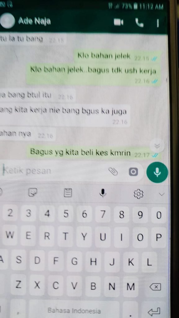 “Itu bukti screenshoot hp milik terdakwa, sekitar 30 lembar bermaterai pos Indonesia jadi sudah leges lah. Itu percakapan antara terdakwa Bagong dengan Adek Naja yang ada di Malaysia berupa bukti chatting WhatsApp,” ujarnya.