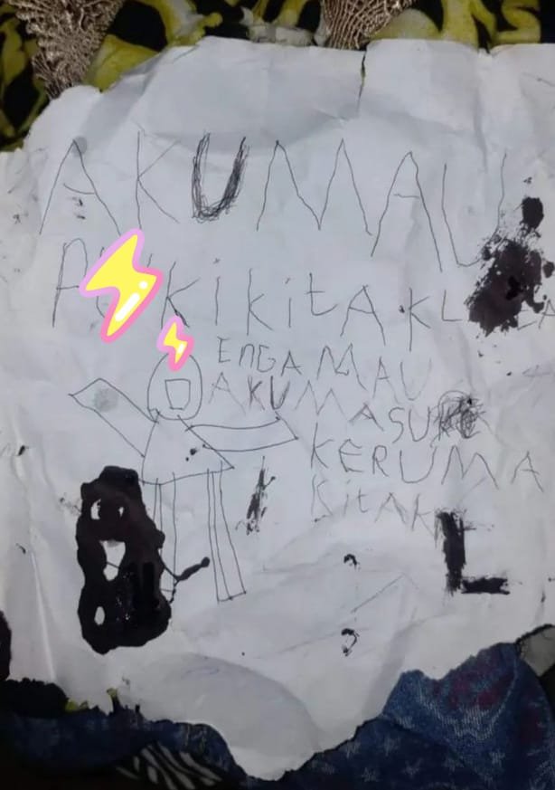 “Ya saya sama anak-anak saja di rumah, jadi awalnya dia lempar surat mungkin karena dikira saya tidak baca makanya dia merusak kaca ini. Saya biarkan saja karena saya takut juga kan dan teriak-teriak juga tidak ada yang dengar karena hujan deras,” tuturnya saat ditemui di kontrakannya.