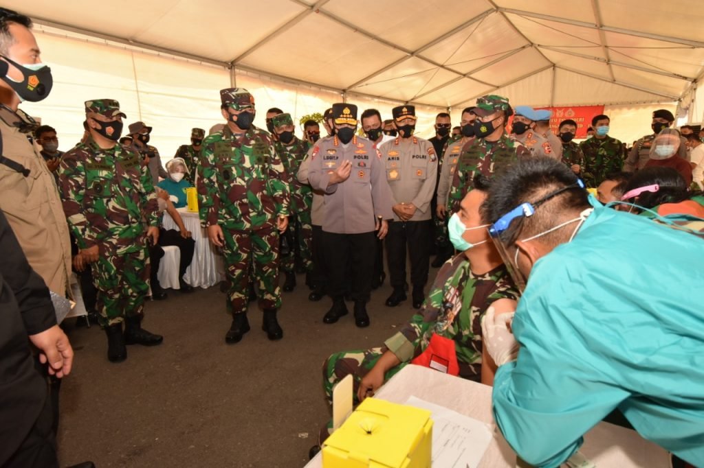 JAKARTA – Sebanyak 1.000 Prajurit TNI – Polri di wilayah Provinsi Kepri menjalani Vaksin Covid–19 pada. Kegiatan vaksinasi dilaksanakan di Gedung Lancang Kuning Polda Kepri, yang disaksikan langsung oleh Panglima TNI Marsekal TNI Hadi Tjahjanto, SIP dan Kapolri Jenderal Polisi Drs. Listyo Sigit Prabowo, M.Si.