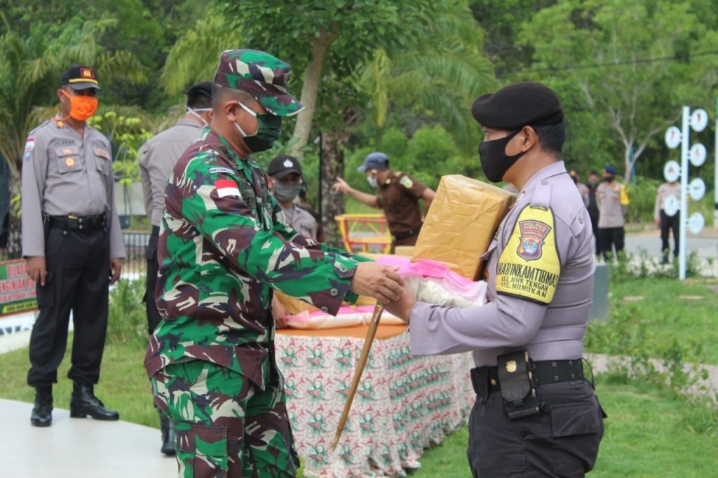 NUNUKAN – Sinergitas TNI-Polri Nunukan semakin Solid di tengah Pandemi Covid-19. Setelah menerima secara simbolis paket bantuan sembako yang diberikan langsung oleh Kapolres Nunukan, Dandim 0911/Nnk, Danlanal Nunukan, Kajari Nunukan, Kadin Kabupaten Nunukan dan IDI Kabupaten Nunukan, Personel TNI-Polri Kabupaten Nunukan secara serentak menunggangi kendaraan dinas roda duanya menyebar dan mendatangi rumah-rumah warga secara door to door, Selasa (28/04/2020).