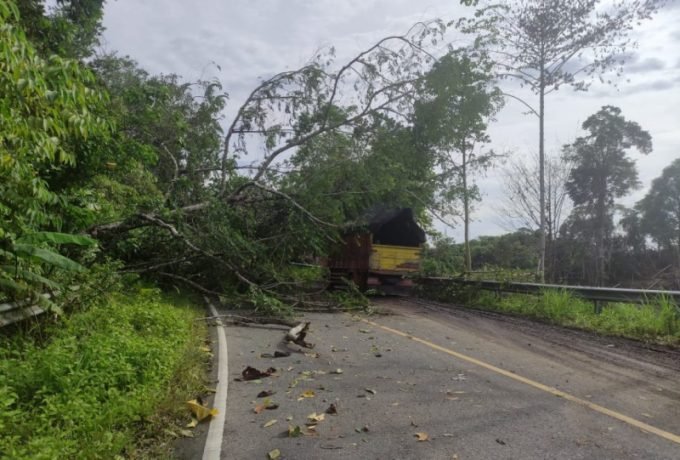 Pohon Tumbang Tutup Sebagian Jalan Poros Provinsi Kaltara