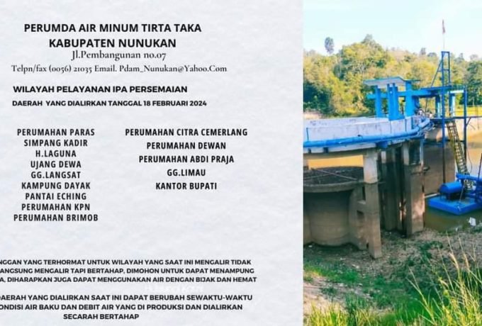 benuanta.co.id, NUNUKAN – Pendistribusian air bersih Perumda Air Minum Tirta Taka hingga