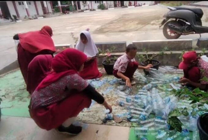 SDN 012 Sei Banjar Nunukan Daur Ulang Sampah Jadi Pagar Taman Sekolah