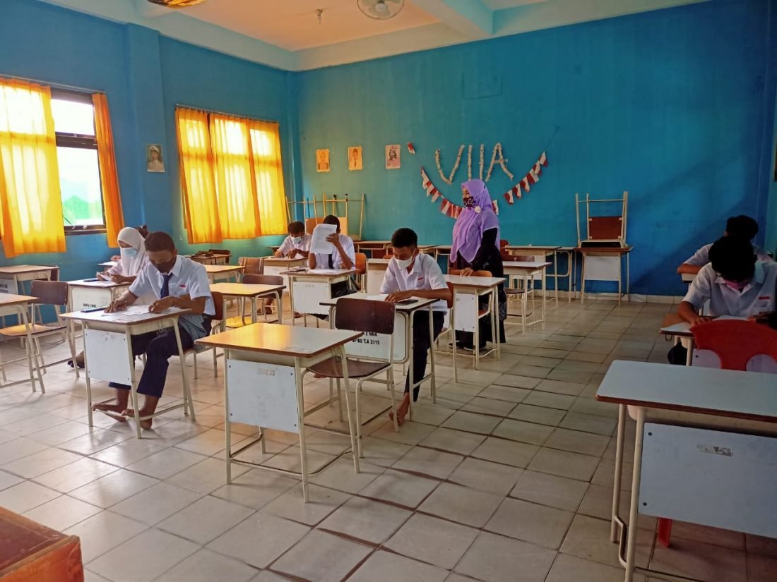 “Satu kali ujian ada dua mata pelajaran, dan kami tidak keluar dari ruangan akan melanjutkan ke pelajaran keduanya. Ini kami lakukan untuk mencegah penyebaran covid-19 agar tidak terjadi perkumpulan,” ucapnya.
